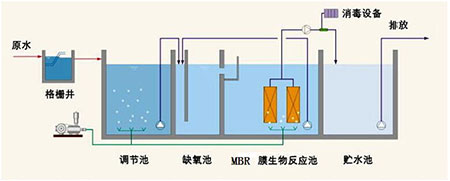 ?。?)調節池出水用提升泵提升到缺氧池,同時經過曝氣硝化過的污水回流進行反硝化脫氮。出水進入接觸氧化池,通過曝氣進行好氧生化處理同時進行硝化反應。
