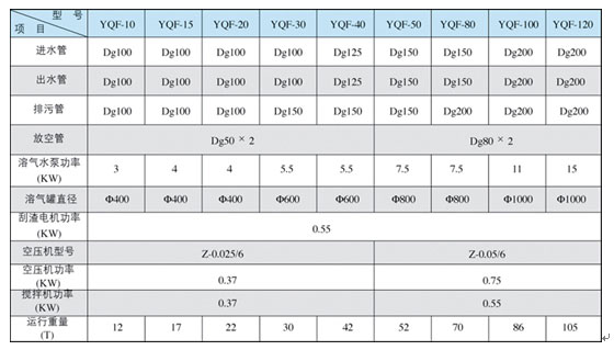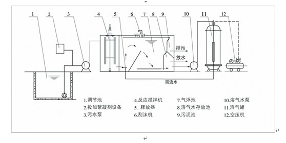 注:溶氣水回流比按30%設計;水力表面負荷:3~6m3/m2˙h;停留時間:15~30min。